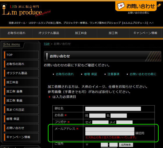 お願いします。こちらが間違っていると、当社からのメールが届きませんのでご注意ください。
